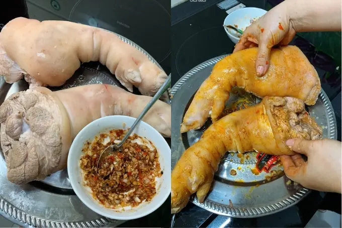 Bước 3: Tiến hành ướp chân giò với muối chanh