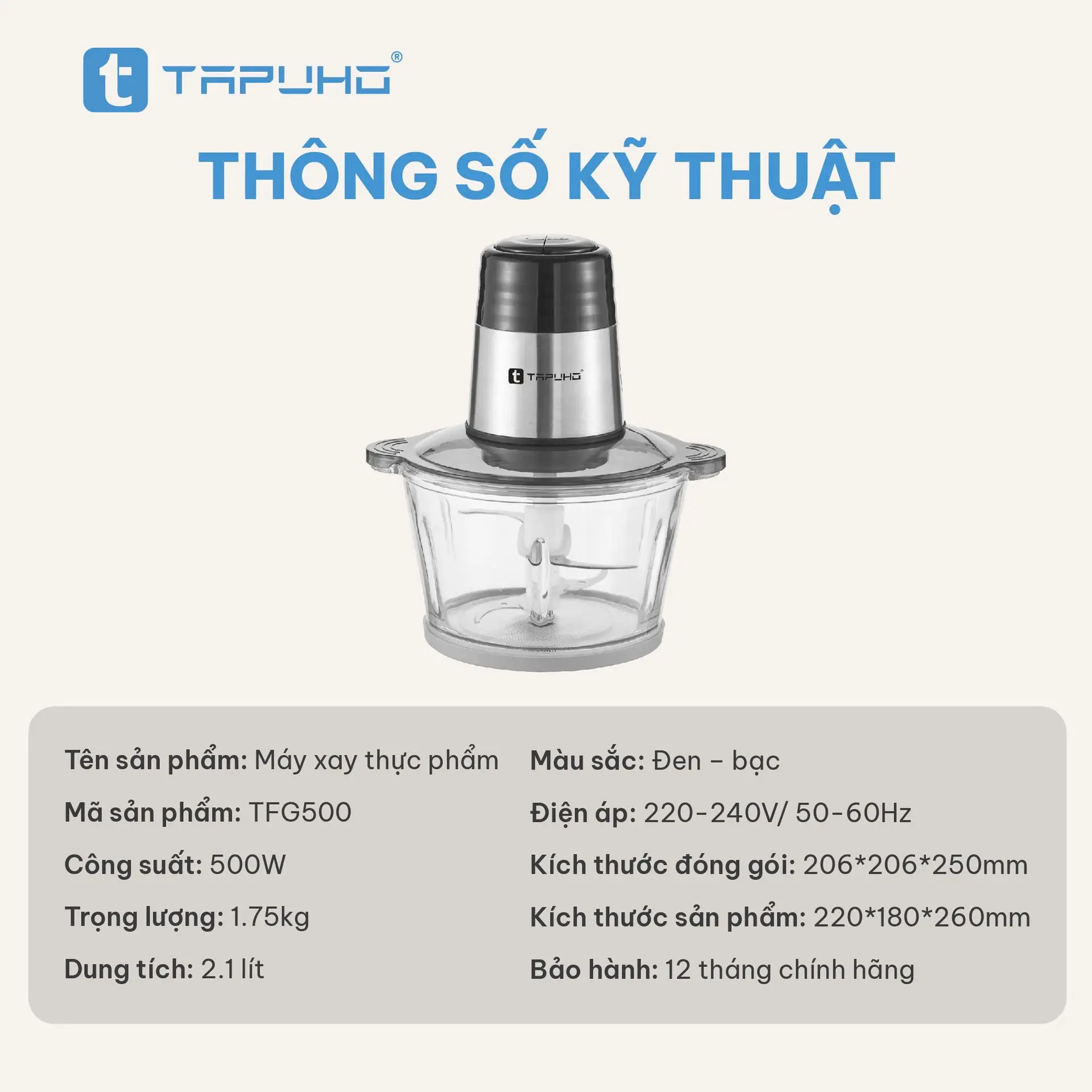 👉 Máy xay thực phẩm TAPUHO TFG500 – Xay nhanh, mịn đều, an toàn tuyệt đối!