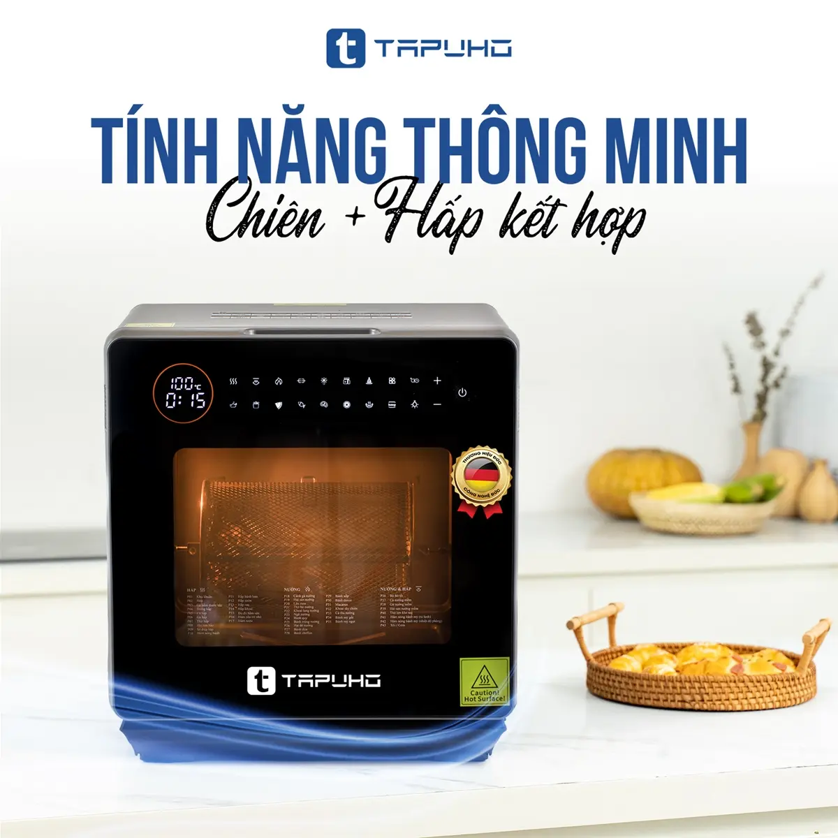 TAPUHO LUXURY STEAM FRYER TSF16 là sản phẩm nồi chiên hơi nước mới nhất của TAPUHO - thương hiệu gia dụng cao cấp đến từ Đức. Đây là dòng sản phẩm mang tính đột phá, bùng nổ công nghệ với sự kết hợp giữa nồi chiên không dầu (công nghệ rapid air) và nồi hấp (công nghệ hơi nước siêu nhiệt steam pro) mang đến sự tiện lợi cho khách hàng, ngoài ra nó còn là sự kết hợp 4 tính năng trong 1, đó là tính năng Hấp - Chiên không dầu - Chiên hấp kết hợp - Hầm và đặc biệt có những chức năng chỉ có trên TAPUHO LUXURY STEAM FRYER TSF16 mà chưa từng có trên bất kỳ sản phẩm cùng loại nào trên thị trường.