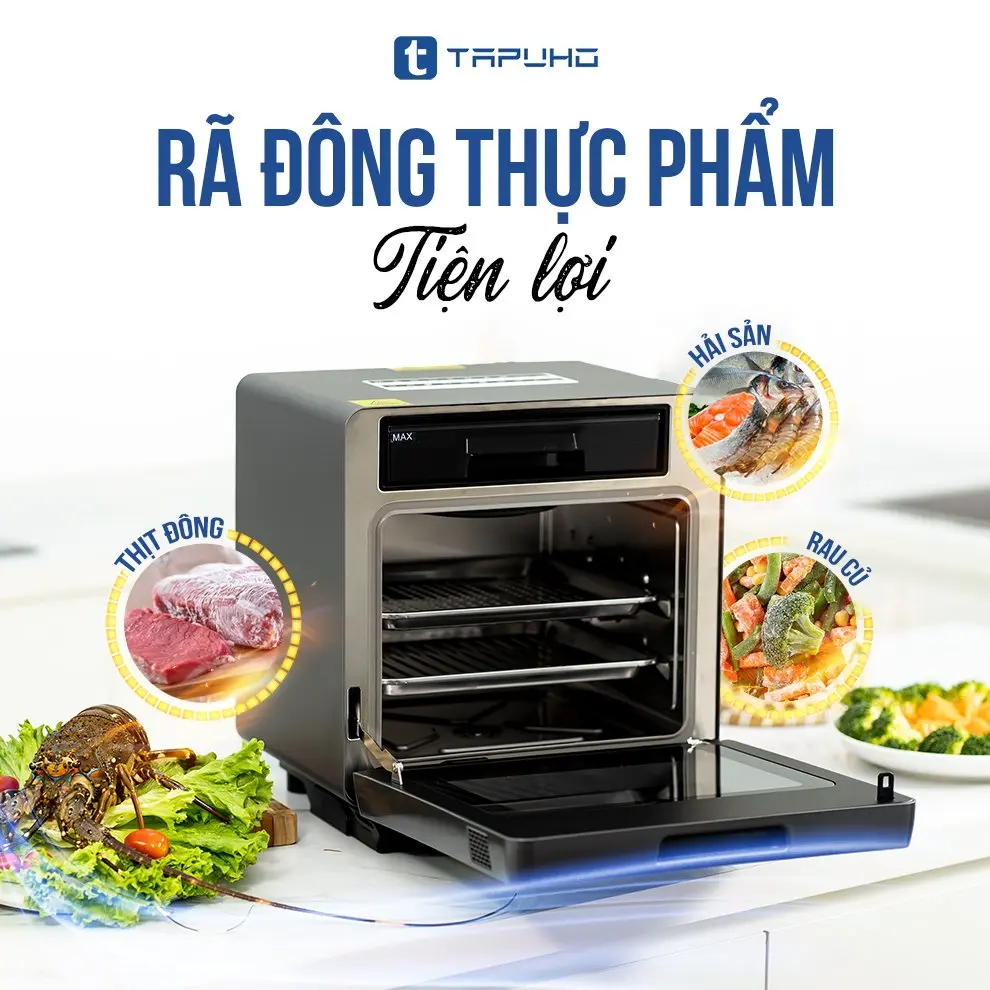 Thì với chiếc nồi chiên hơi nước TAPUHO LUXURY STEAM FRYER TSF16, mọi người có thể rã đông thực phẩm đông đá một cách nhanh chóng bằng công nghệ nhiệt, công nghệ này không gây độc hại, không ảnh hưởng đến chất lượng thực phẩm, không gây hiện tượng chín trong và làm mất đi sự tươi ngon của thực phẩm.