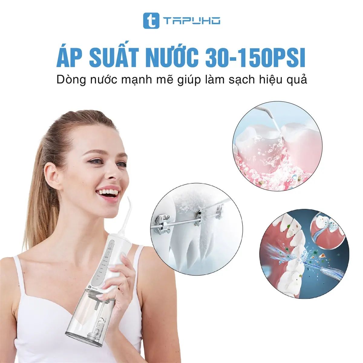 Máy tăm nước là một thiết bị giúp làm sạch răng miệng bằng nước. Tăm nước sử dụng lực nước của các đầu xịt, bắn ra một tia nước nhỏ để bạn điều chỉnh tia nước này vào kẽ răng và nướu để lấy hết thức ăn thừa và mảng bám ở kẽ răng, nướu và khoang miệng, giúp ngăn chặn hình thành cao răng và các vi khuẩn gây sâu răng. Tia nước xịt ra rất dịu nhẹ nên ít có nguy cơ gây chảy máu nướu khi sử dụng.