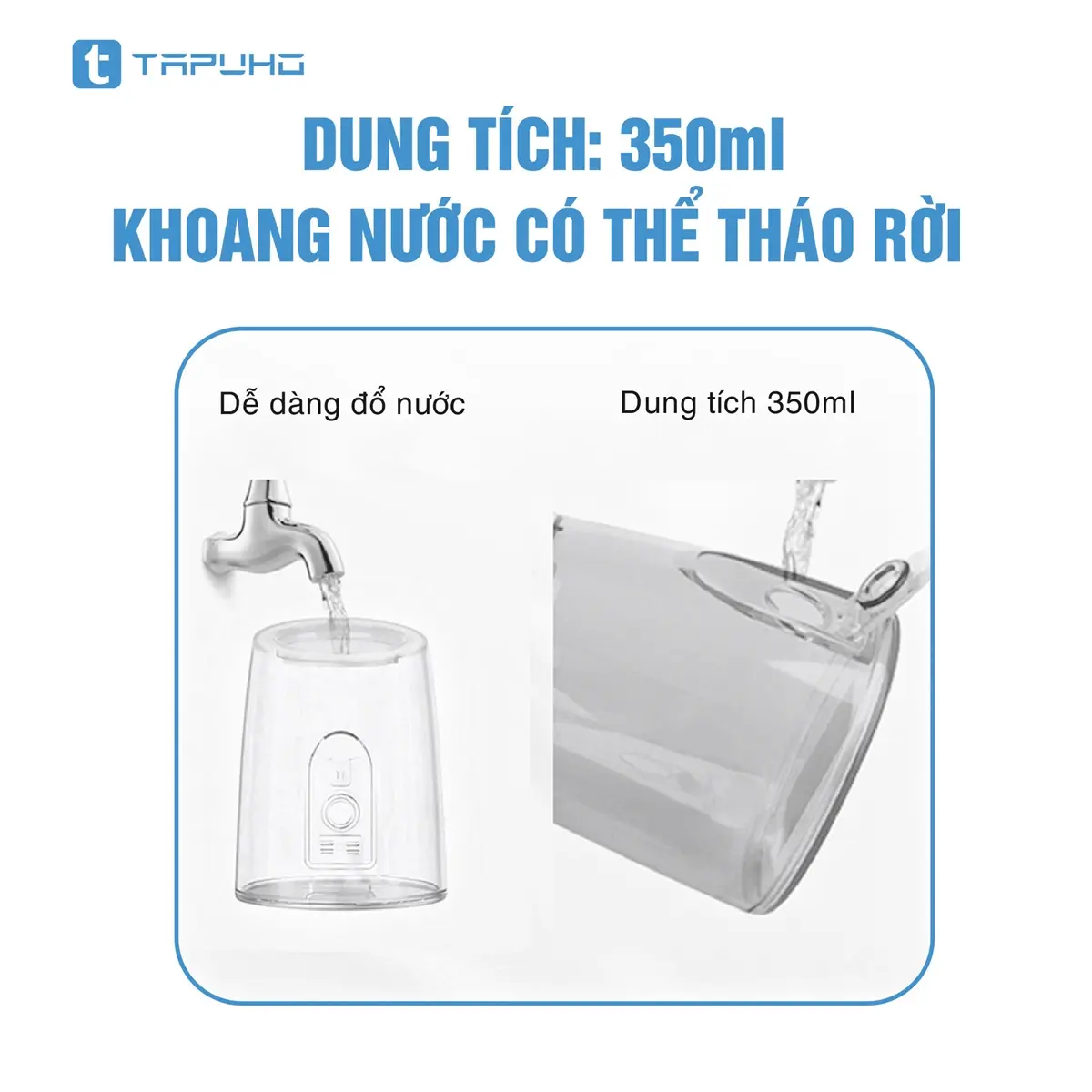 Dung tích 350ml: Đây là mức dung tích phù hợp cho mọi cá nhân sử dụng, không quá nhỏ, không quá to, có thể mang đi du lịch hay sử dụng tại nhà. Dung tích này đáp ứng nhu cầu làm sạch răng của bạn mà không cần bổ sung nước nhiều lần, rất thân thiện và tiện dụng.